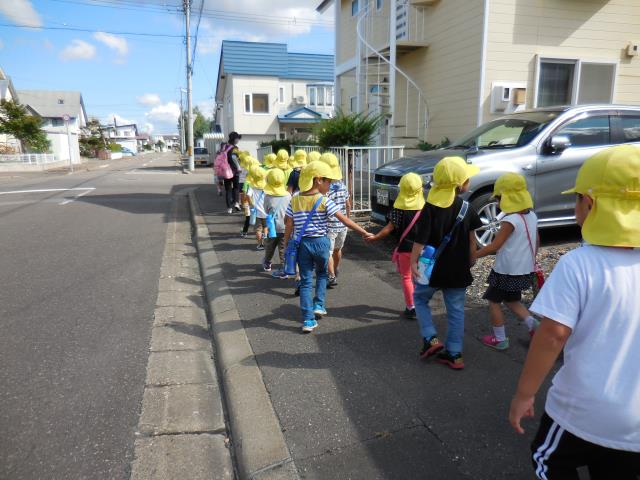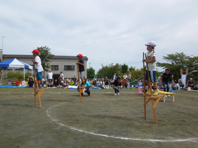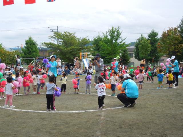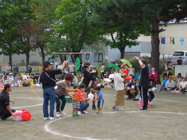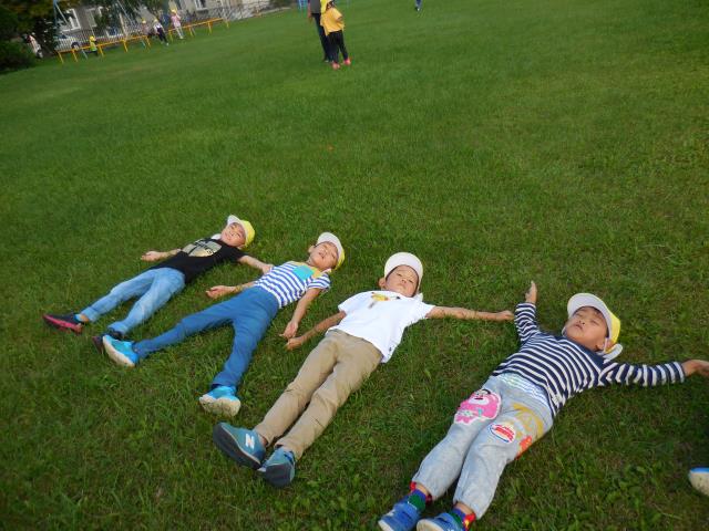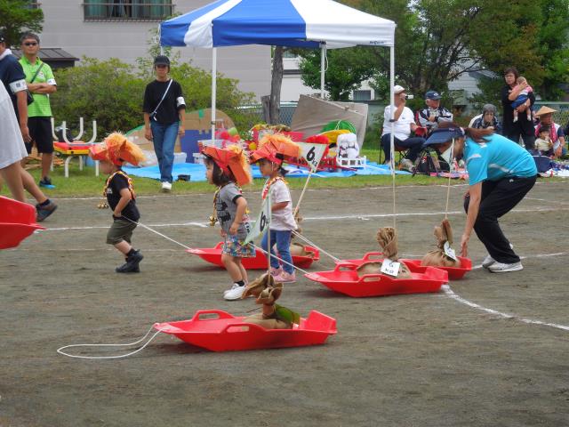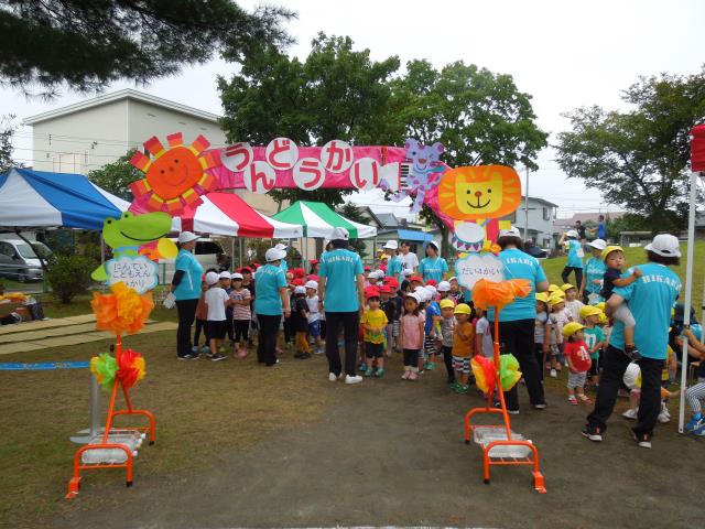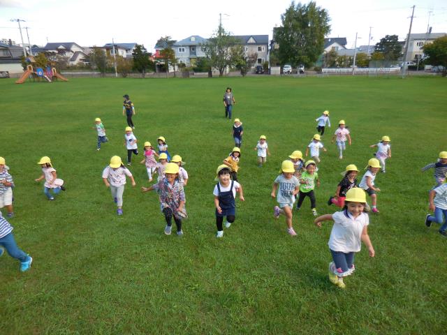 運動会で すっかり体力がついたみんなは、ずっと動き回ってあそび、帰りにはいつもと違った道を通り、楽しそうに帰って来ましたよ。