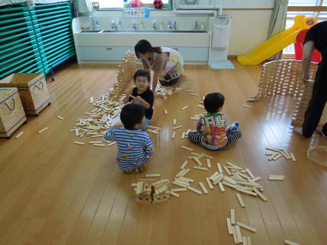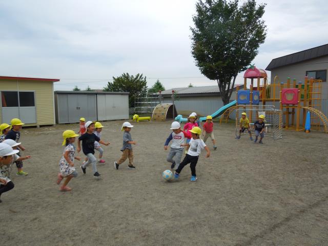 ホ-ルでは「カプラ」でお友達と協力してそれぞれ好きな物を作り、戸外では園庭で「サッカ-」をして、ボールを必死に追いかけながら、沢山体を動かしていましたよ。