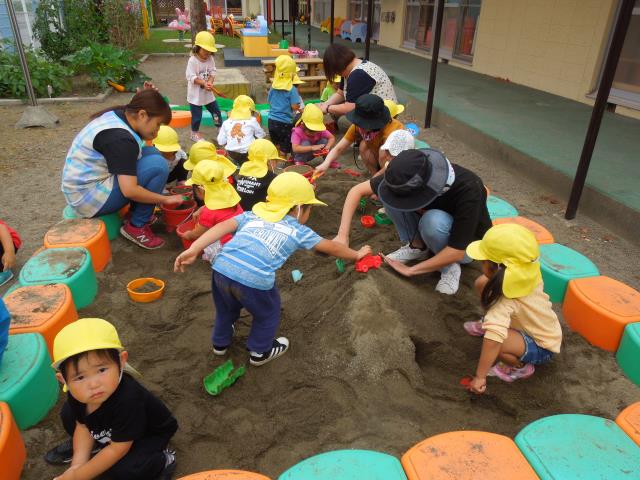 砂場では大きな山からトンネル作りに夢中になっていた子ども達でした。