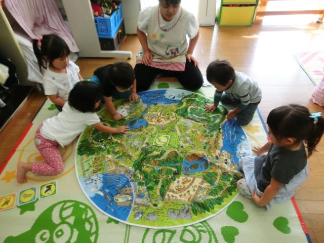 みんなで楽しく盛り上がり、『いきもの探し』を続ける子、『絵合わせゲーム』を始める子と様々でした。