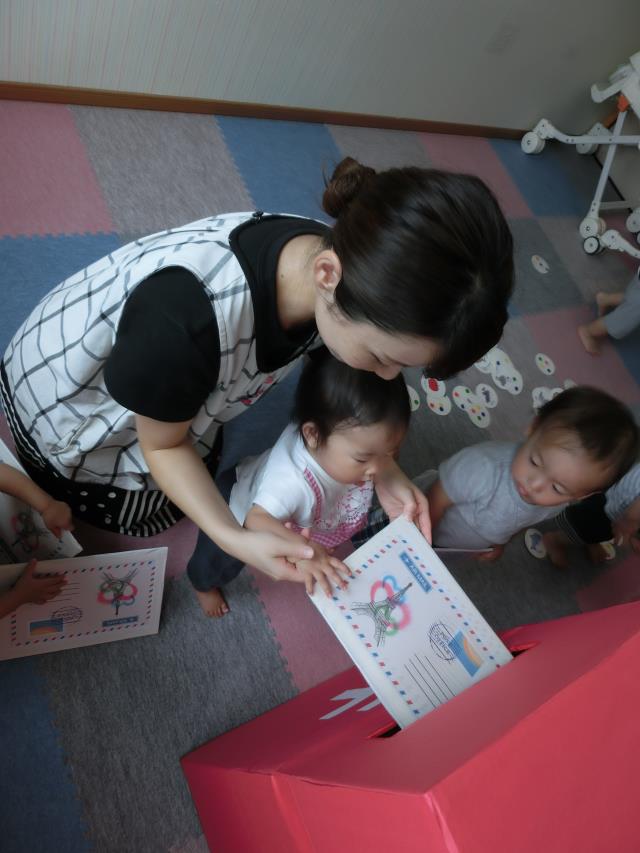 運動会で使用した大きな‟ポスト”に、お手紙を入れて何度も楽しみました。