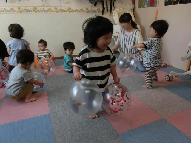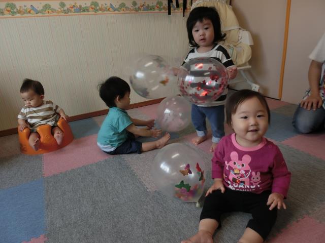つくし組さんは、お部屋の中で‟風船遊び”をしました。
