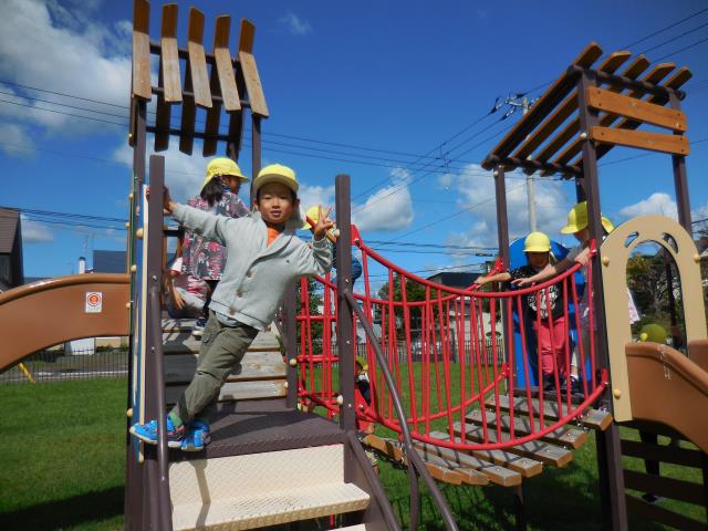公園では2クラス入り混じり、固定遊具で遊んだり、坂を駆け上ったり、転がってみたりと元気いっぱい‼
