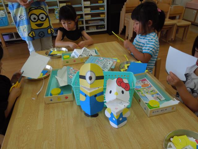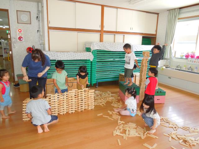 大きい子が小さい子の面倒をみたり、大きい子が作ったものを受け継いだりしながら、時間いっぱい楽しんでいたお友達もいました。