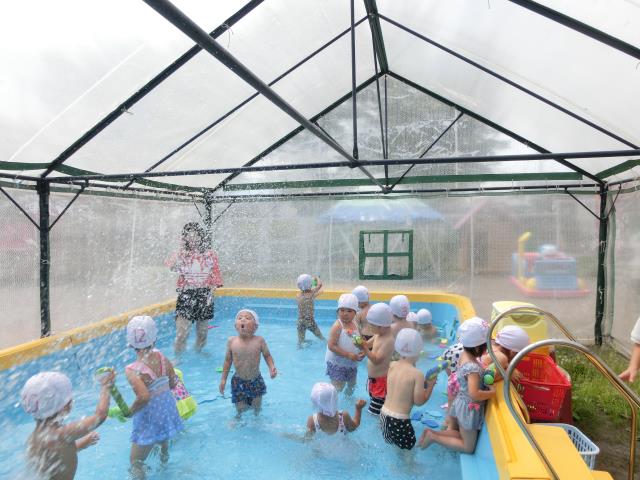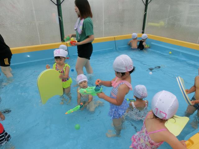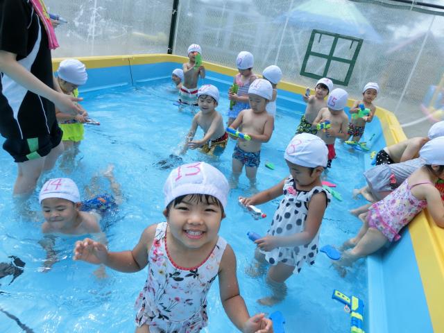 みんな楽しく‟わにさん泳ぎ”をしたり、水鉄砲で遊んだりしていました。