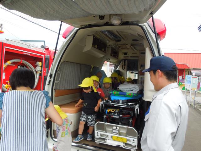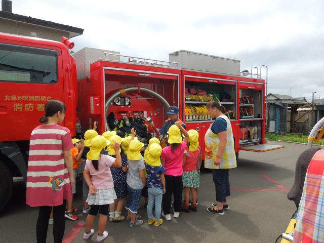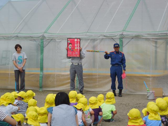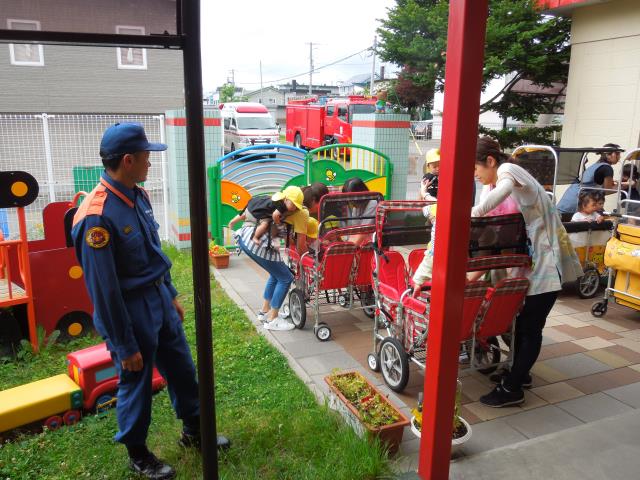 今日は消防署の方が来園して、避難訓練の様子を見てくださいました。