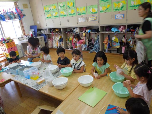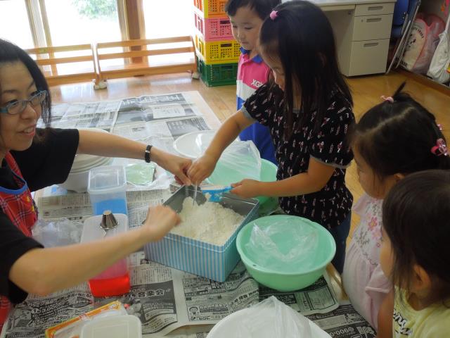 園内では、1部屋で‟小麦粉粘土作り”をしました。
