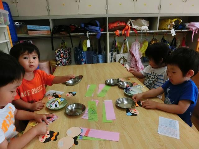 たんぽぽさんは、先日 保育参観の日に作っていた‟短冊”の続きをしました。
