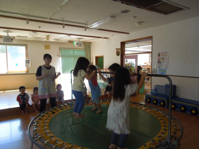 順番を守って跳んだり、お友達と協力をして高く積み重ねていました。