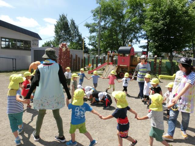 外では、園庭で‟鬼ごっこ”や‟集団遊び”をしました。