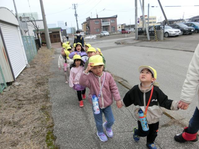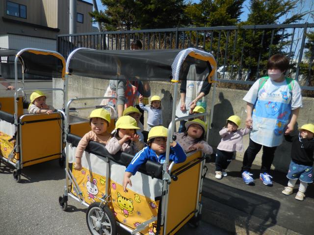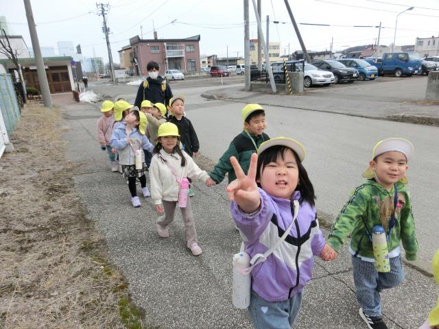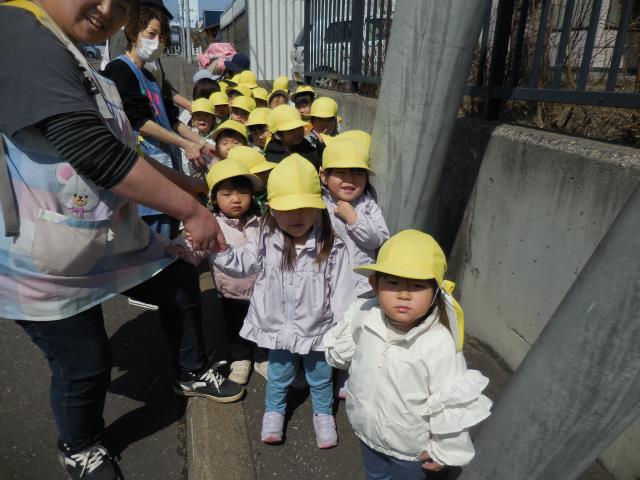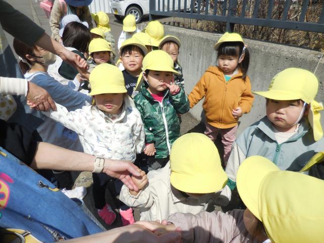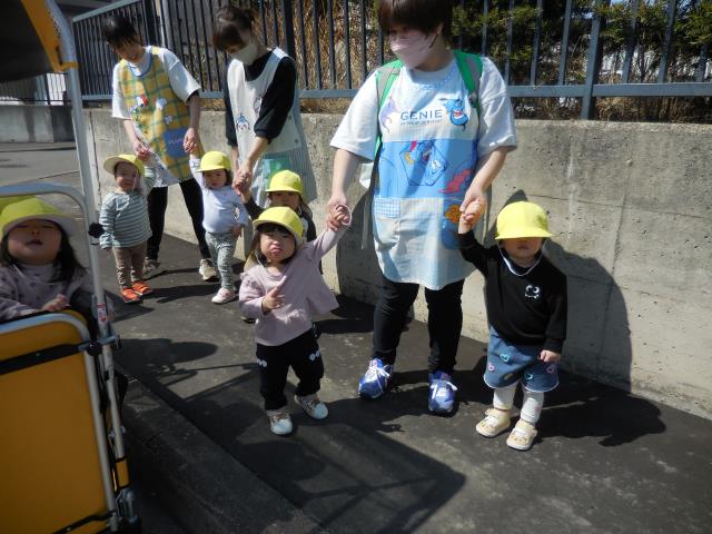 お友だちや先生と手を繋いで、お花やアリさんを見つけたり、暖かい風に春を感じながら沢山歩いてきましたよ♪