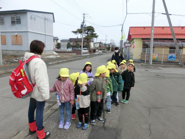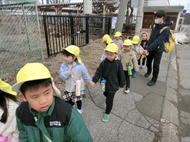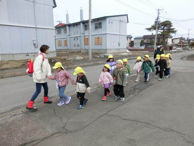 お友達と仲良く手を繋いで歩きました。