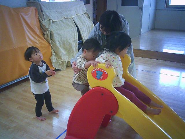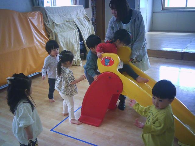 広場ではローラ-滑り台を何度も滑って楽しんだり、追いかけっこをしたりと沢山走ってきました。