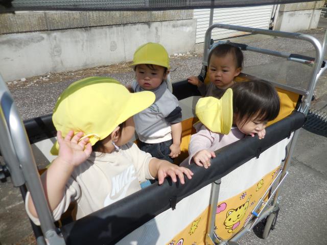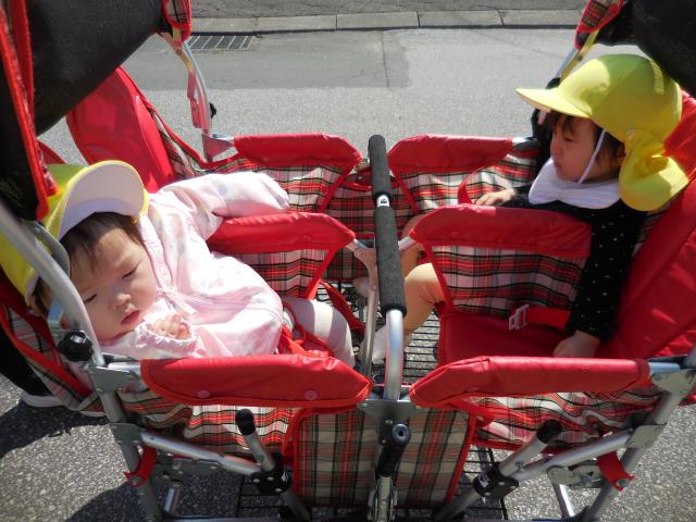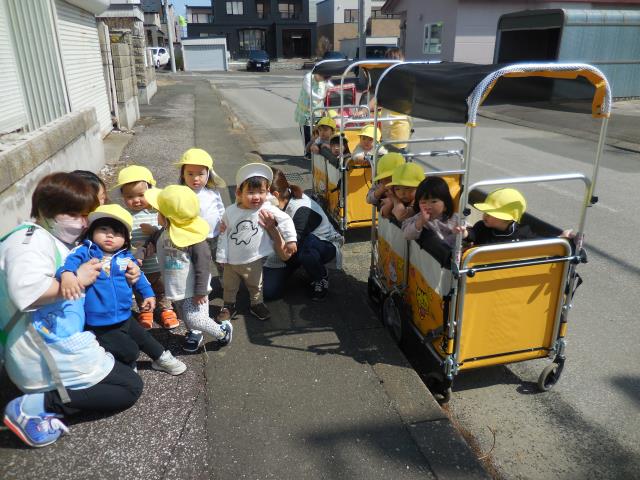 ベビーカー・お散歩カー・歩く子と分かれ、みんなで行っています。