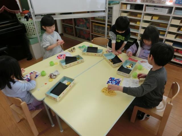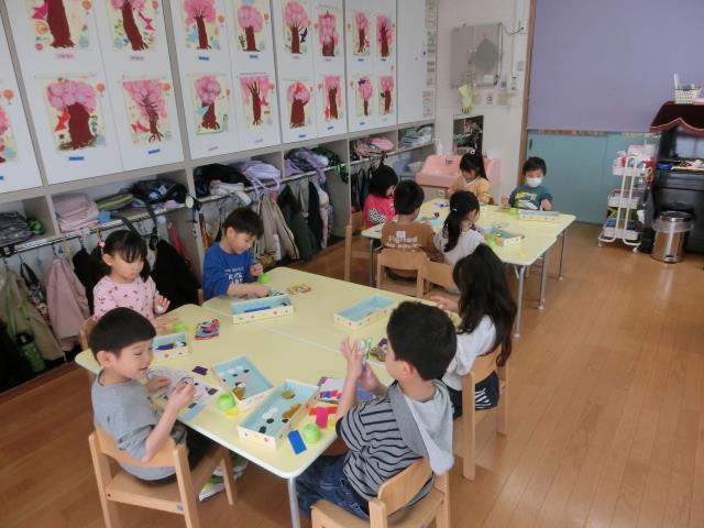 今日のすみれぐみは、こいのぼりの2匹目の模様を作っています。