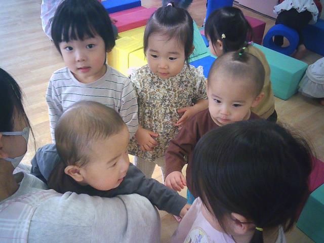 ホールにお散歩にきたひよこさんのお友達とも、仲良く触れ合い交流を深めています。