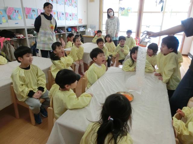 バブルアートでは、フーッと息を吹くと沢山の泡が出てきて大興奮の様子でしたよ。