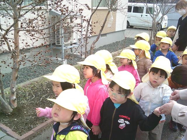 今日のすみれぐみは、春を探しながらお散歩に行って来ました。
