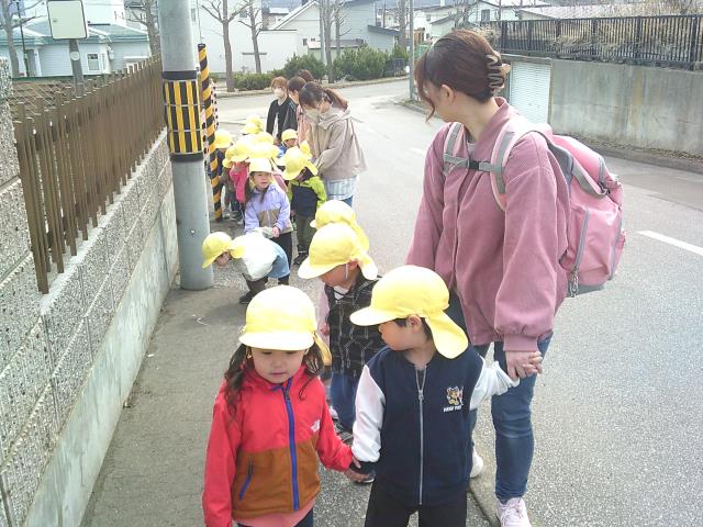 その後は天気も良かったので、園周りのお散歩にも行っています。