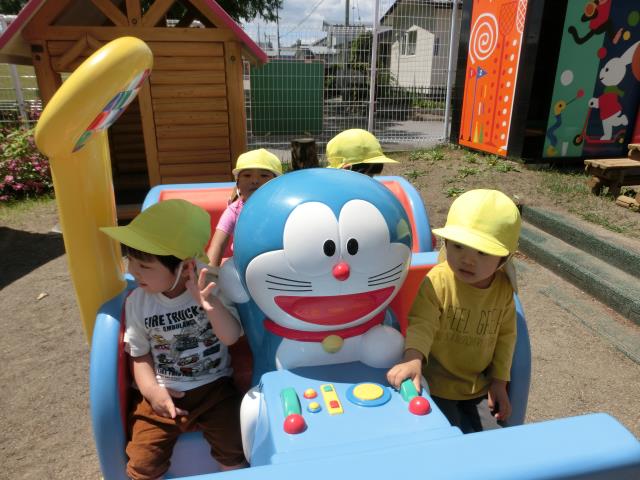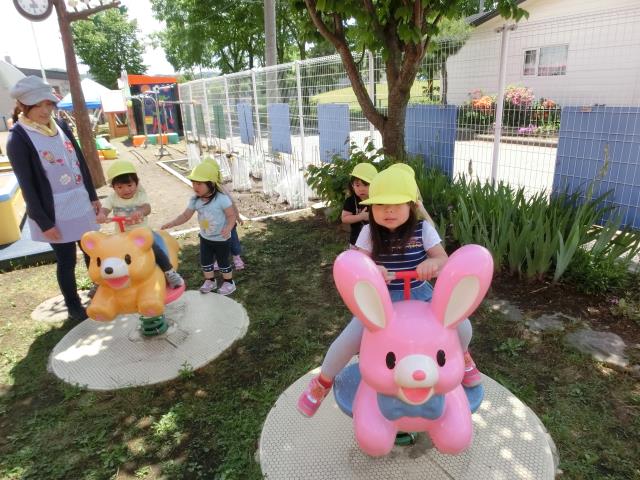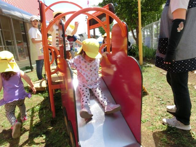 たんぽぽさんは、玄関前の遊具で遊びました。
