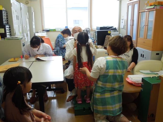 虫歯の本数は、先生たちが赤く塗ってお知らせします。