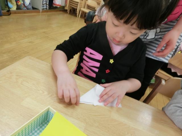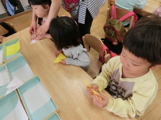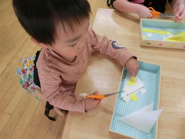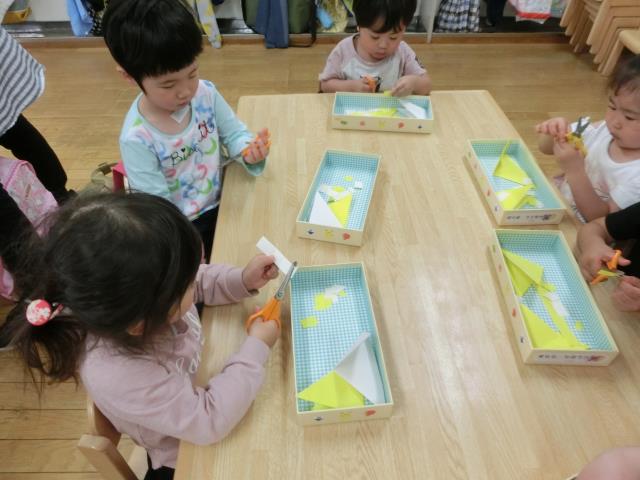今日の ちゅうりぷさんは、”おりがみ”と”ハサミ切り”をやりました。