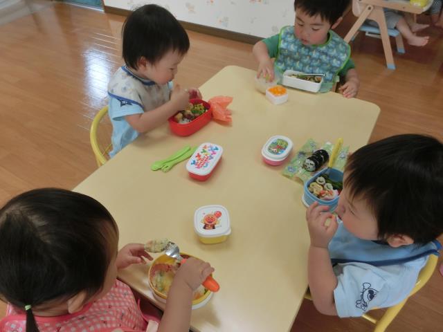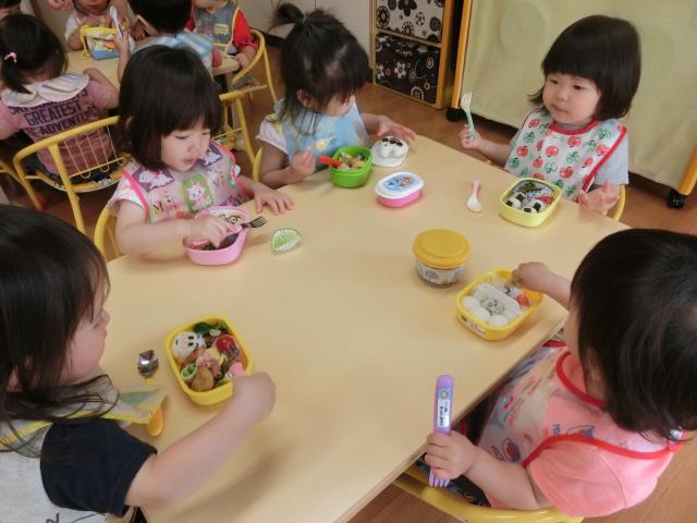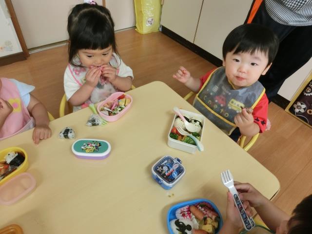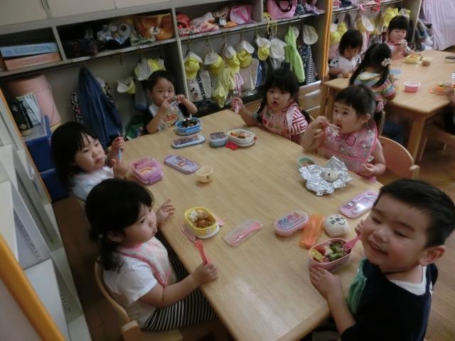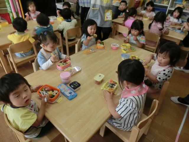 園に戻ってお母さんの愛情がたくさんこもったお弁当を食べました。
