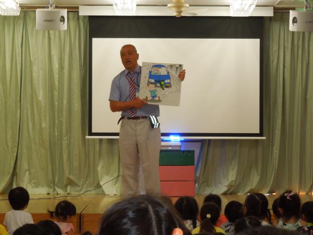 今日は交通安全指導員の方に来て頂き、交通ル-ルなどを教えて頂きました。