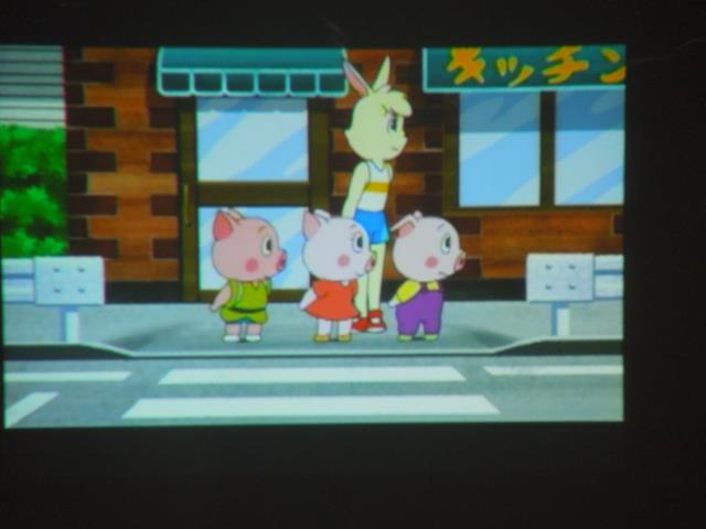 その後、「3匹のこぶたの交通安全」のDVDを見てお勉強をしました。