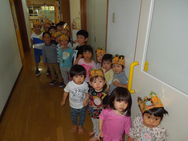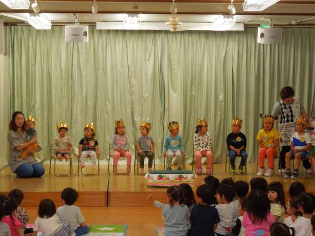 今日はみんなで5月生まれ10名のお友達をお祝いしました。