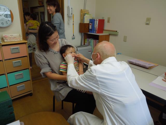 園庭では、園長先生の質問にしっかり答えながらお話を聞いていました。