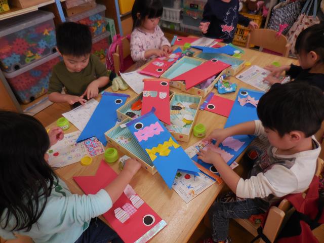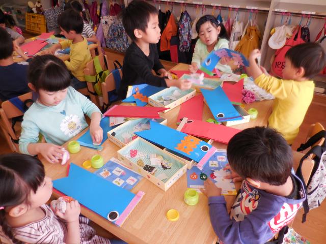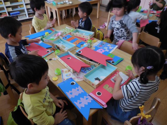 先週に引き続き、今日もこいのぼり作りをしました。