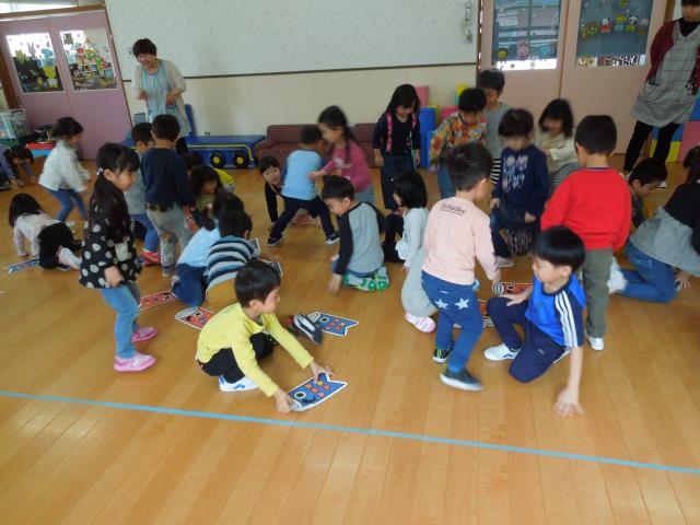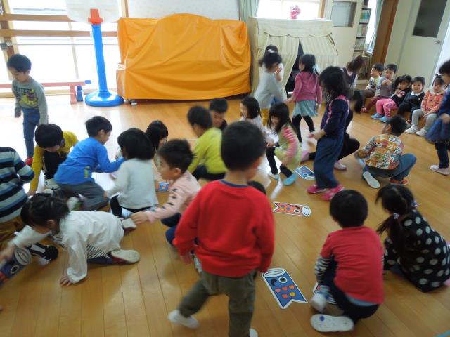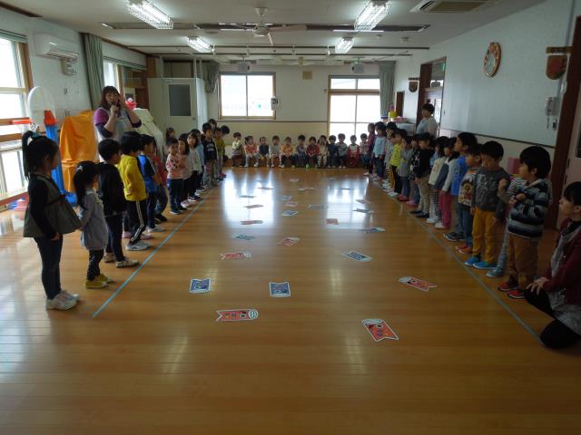 園長先生に”子どもの日”の由来についてのお話を聞いてから、歌を歌いみんなでゲーム大会をしました。