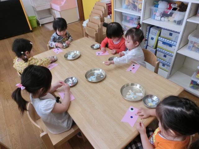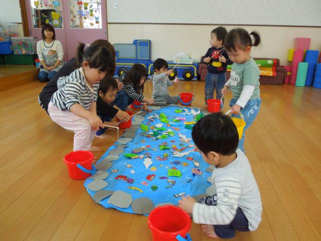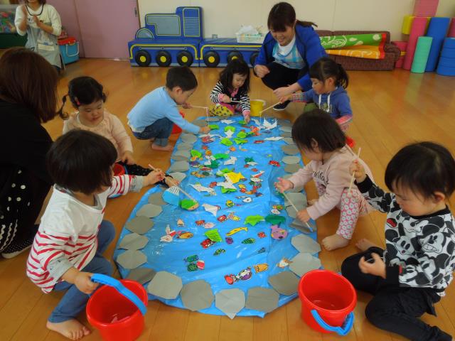 一番小さなひよこさんは見学で、つくしさんは『魚ひっぱりゲーム』、たんぽぽさんは『魚釣りゲーム』をしました。