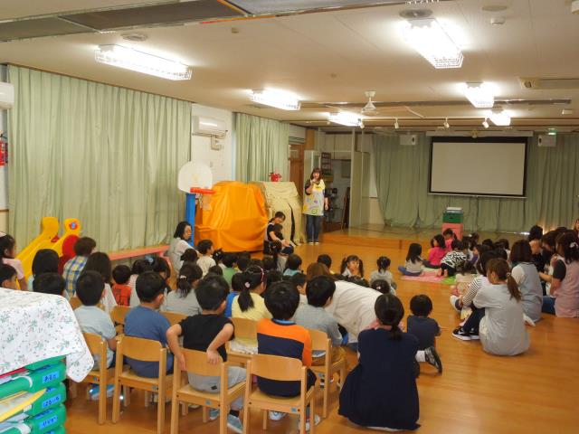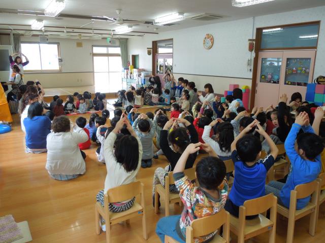 ハメハメハ大王の登場に驚いてしまった子もいましたが、曲に合わせ体を一緒に揺らしながら楽しんで見入っていましたよ。