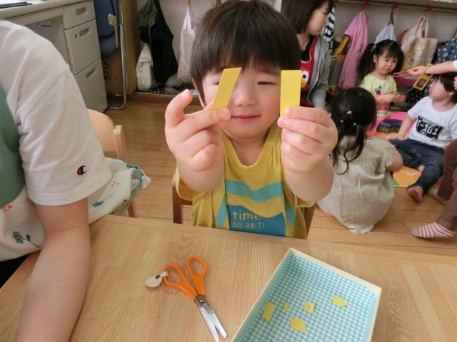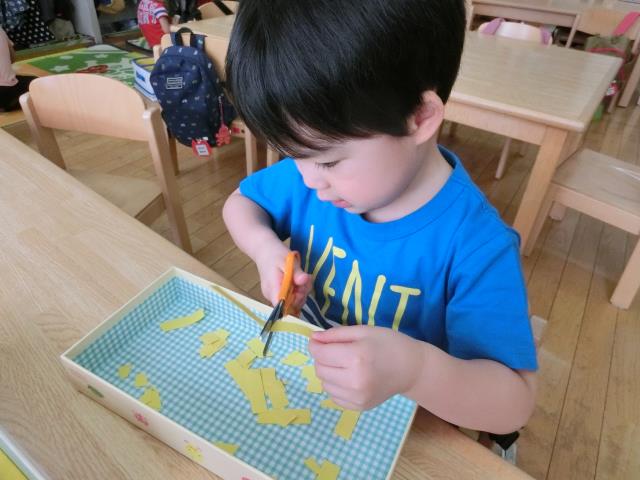 ちゅうりっぷ組さんは”こいのぼり”作りで、ハサミ切りをしてみました。