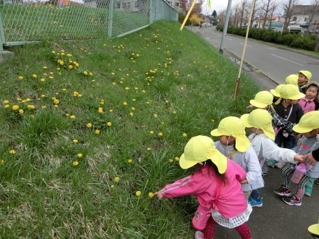 途中”松ぼっくり”や”たんぽぽ”の花を見つけて、嬉しそうに話をしながら歩いていたみんな。