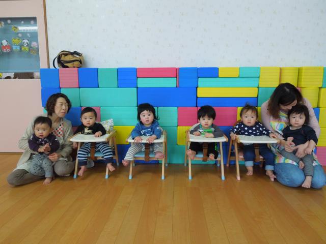 4月生まれのお友達は7名で、大好きなお友達と笑顔で一緒に入場しました。