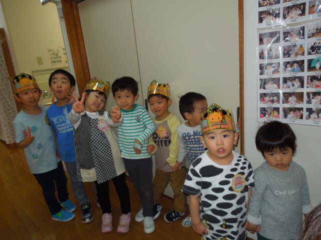 今日はホ-ルで全員集まり、お誕生会を行いました。