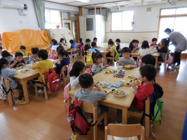 そして、給食も さくらさん・すみれさんはホールで一緒に食べました。