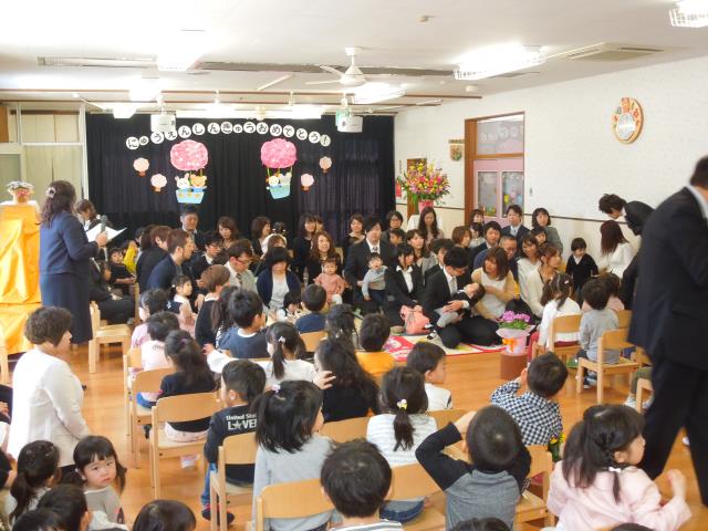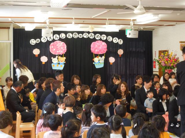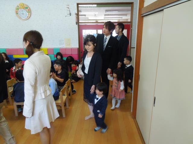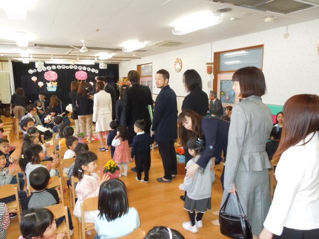 新入園児と昨年度の途中入園のお友だちが親子で式に参加しました。