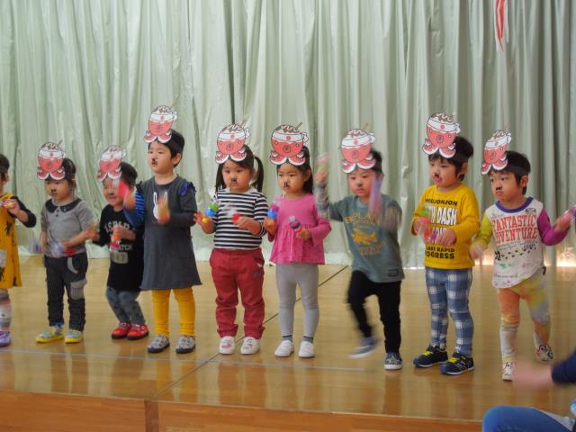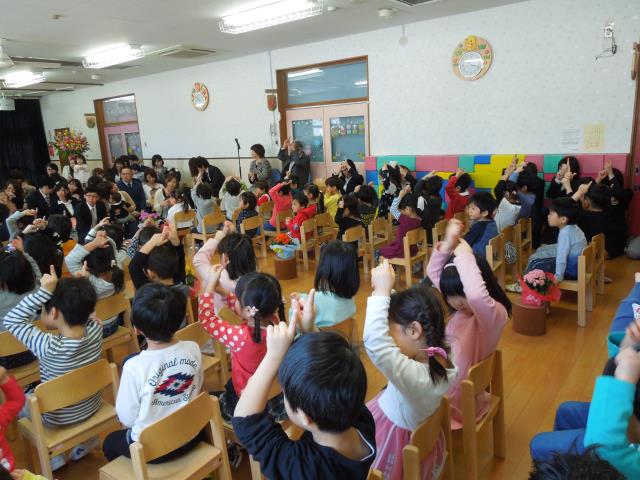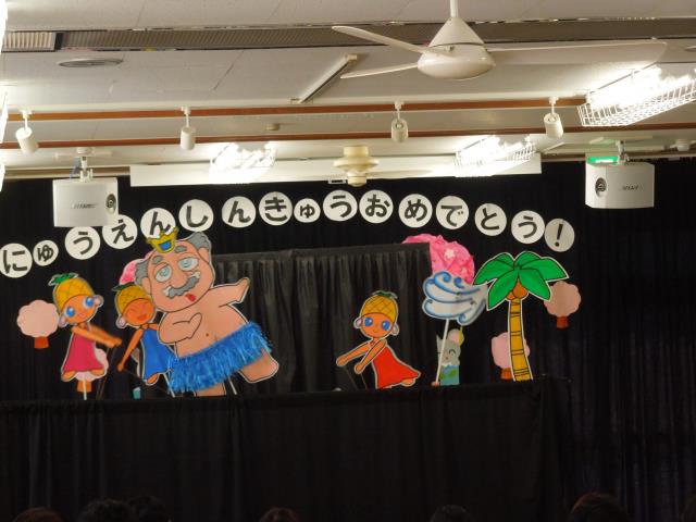 式の終盤に保育教諭によるペープサート“南の島のハメハメハ大王”を見て楽しみました。