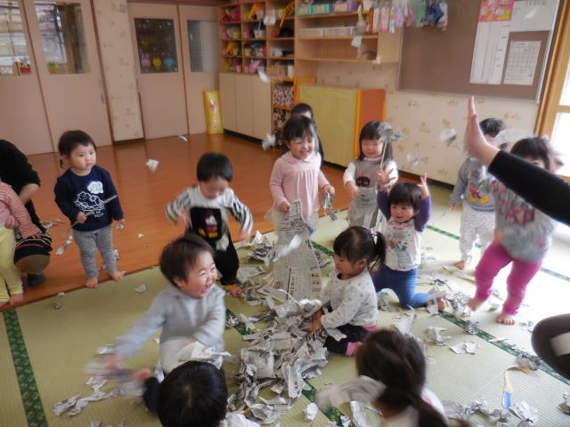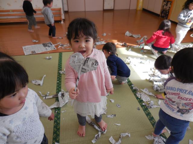 つくしさんは”新聞紙あそび”をしました。
