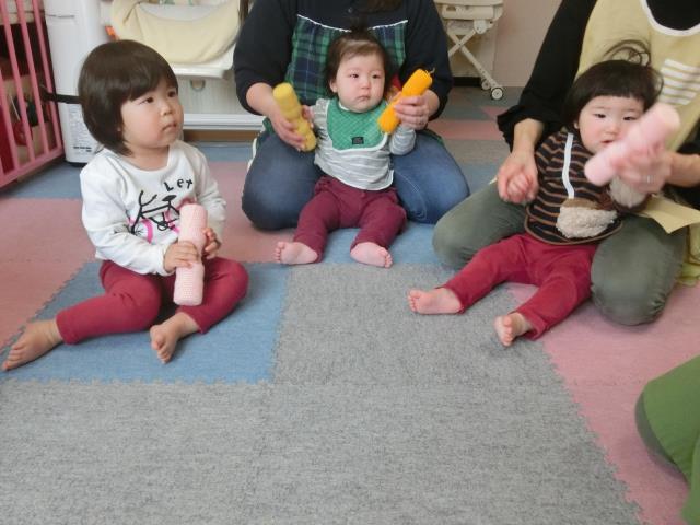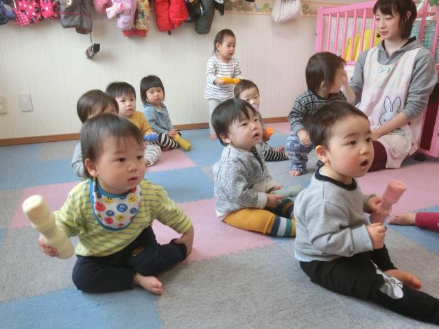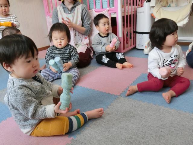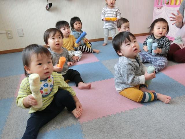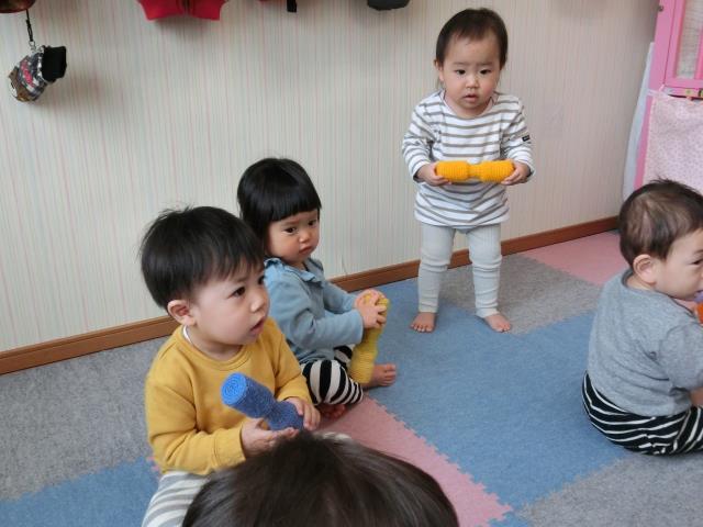 みんな、初めて見る楽器に興味津々で『おもちゃのチャチャチャ』の曲に合わせてマラカスを振って、楽しんでいましたよ!