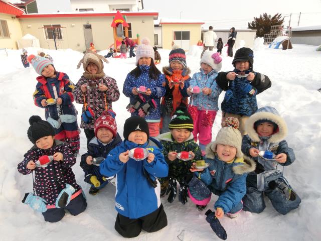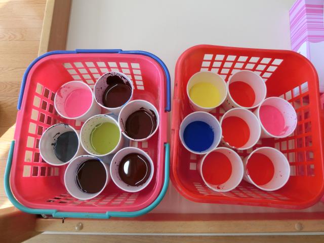 そうこうしている内に、氷が溶け始め『氷は 遊んでいると”溶けて、また色水になるんだ!』と、変化を楽しむことが出来ました。