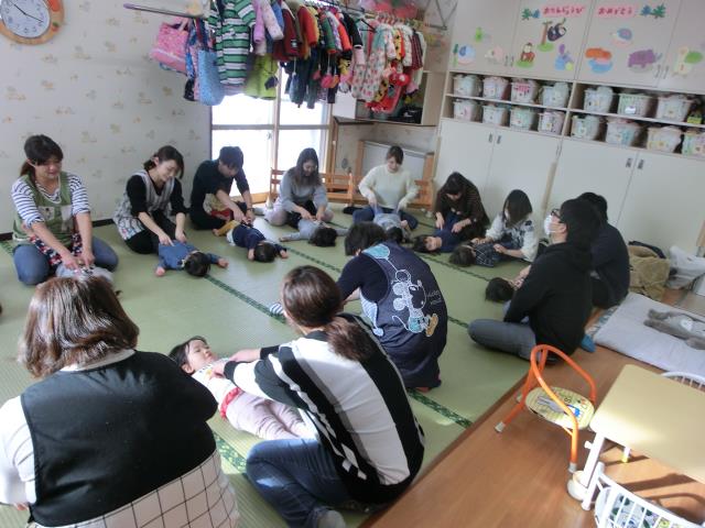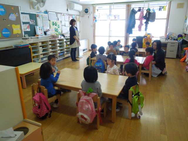 4歳児は、トントン相撲とわらべ歌遊びをしました。