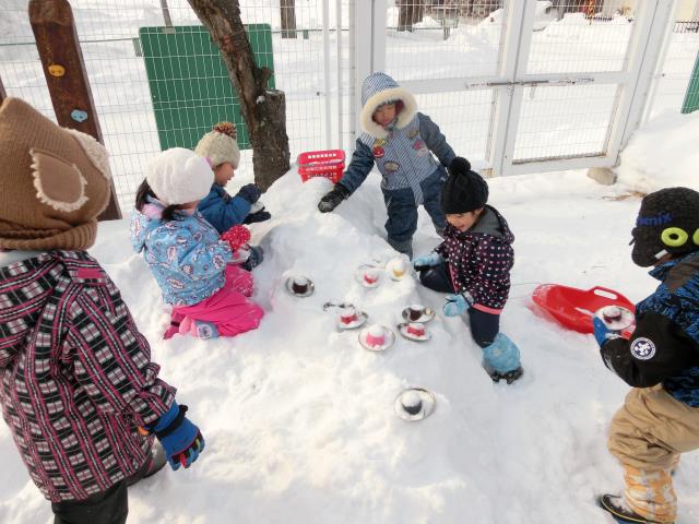お皿に”氷”を出して、アイス屋さんが始まりました。