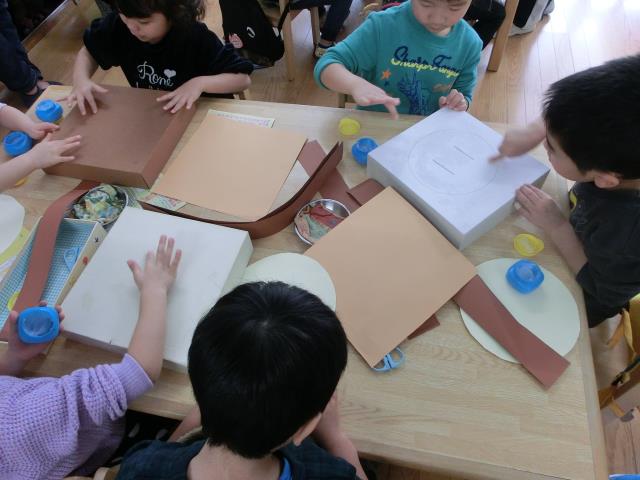 今日は、節分に向けてみんなで‟マス”作りをしています。
