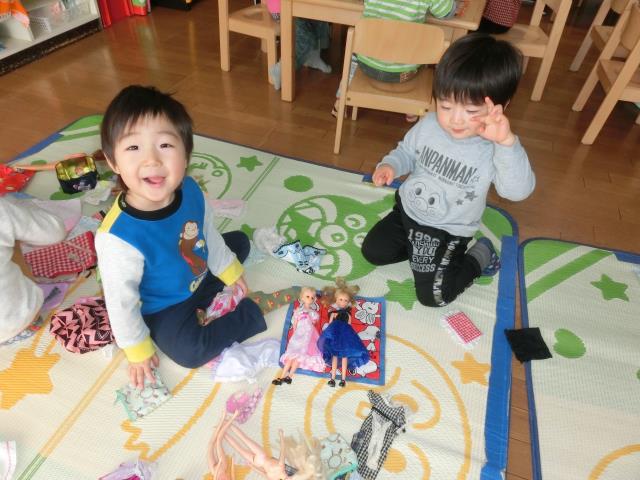「お人形が使いたい!」と、女の子が言ったので、ちゅうりっぷ組さんから借りてきましたが、なぜか使っていたのは男の子・・・。