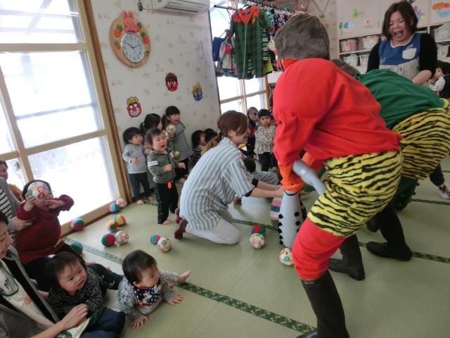 と、言ってもやっぱりオニは怖くてオニが来る前から泣いていた子や下を向いたままの子、となりの子より一歩下がって身をひそめている子など、いつもの元気がウソのようでした。